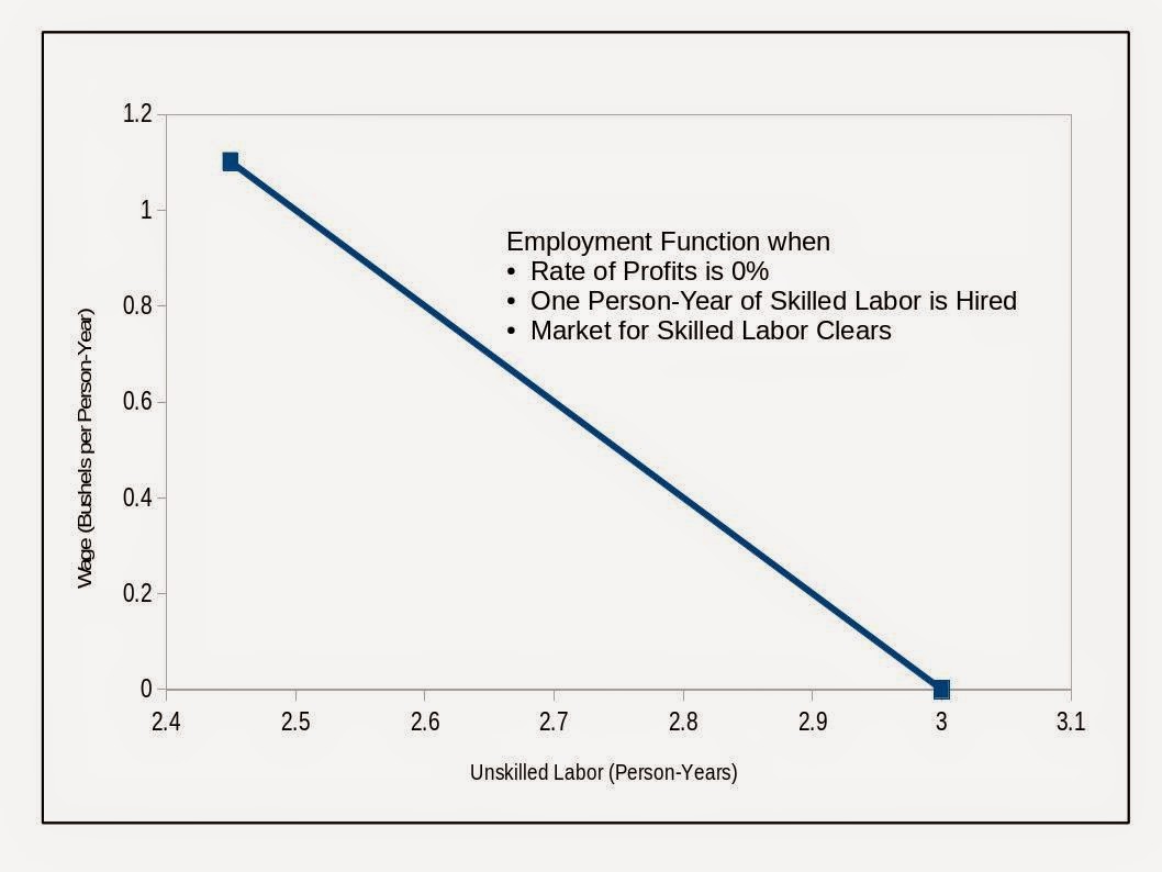 For this machine type to correspond to the cost-minimizing technique, given a rate of profits of zero and market clearing for both labor markets, the wage of unskilled labor must be the following function of unskilled labor: